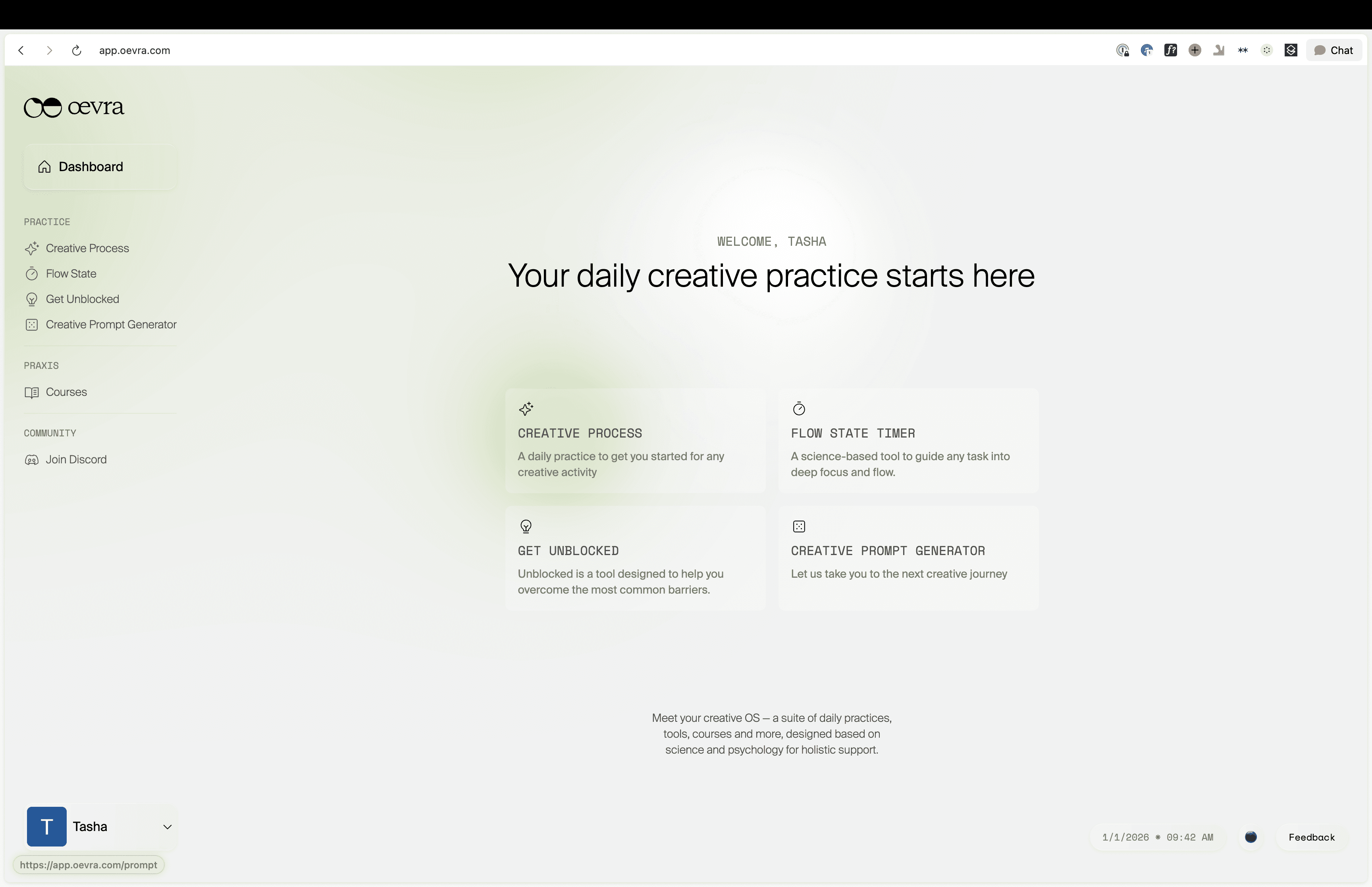 oevra is the first app designed to enhance your creativity and help you get into the flow state, based on neuroscience and psychology. This digital platform is our first applied product — made to support creative flow in a world where attention, work, and meaning are being reconfigured.